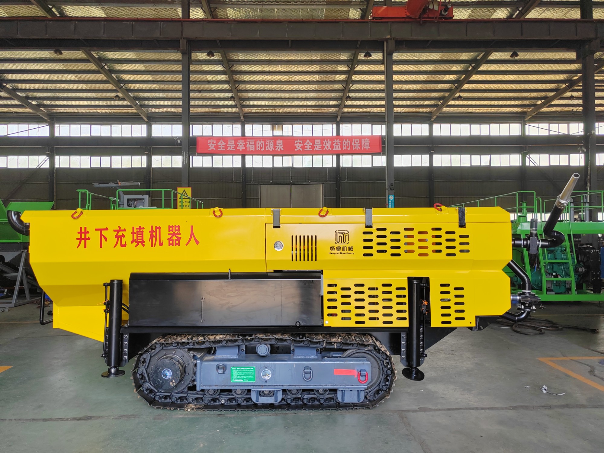 恒睿井下充填設(shè)備是用于在礦井下進(jìn)行充填作業(yè)的設(shè)備,它們?cè)诿禾抗I(yè)中扮演著重要的角色,主要用于防止地面沉降和減少對(duì)環(huán)境的影響。這些設(shè)備通常由多個(gè)組件組成,包括輸送帶、給料器、攪拌裝置、泵和管道等。?輸送帶?通常采用高強(qiáng)度、耐磨的材料制成,以確保其能夠承受礦井中的惡劣環(huán)境。給料器的作用是將矸石從地面輸送到輸送帶上。攪拌裝置?則將矸石與適量的水和其他添加劑混合,使其形成適合充填的膏狀物。?泵和管道?負(fù)責(zé)將充填膏狀物輸送到礦井中,以實(shí)現(xiàn)充填的目的。